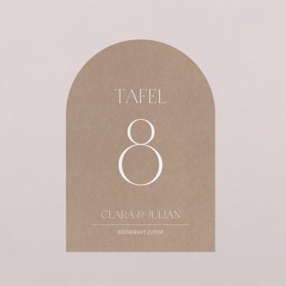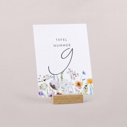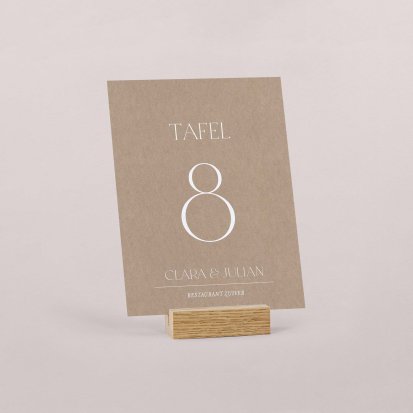 Tafelnummers zet je doorgaans in het midden van de tafel. Ze corresponderen met de indeling die je hebt gemaakt. Bij binnenkomst geef je aan je gasten door aan welk tafelnummer ze plaats kunnen nemen. Duidelijker kan niet en het placeren verloopt georganiseerd. Zo houd je alles in eigen hand.