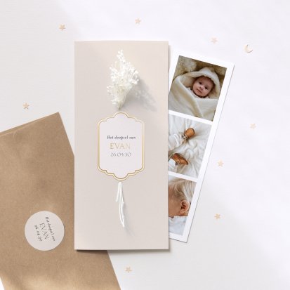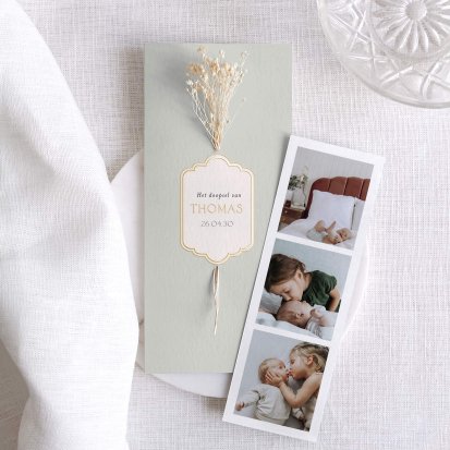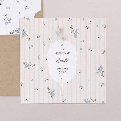 Ontdek onze doopseluitnodigingen en tafeldecoratie. Kleed voor deze dag de tafels in hetzelfde thema dankzij onze bijbehorende menu's en doopsuikerdoosjes.