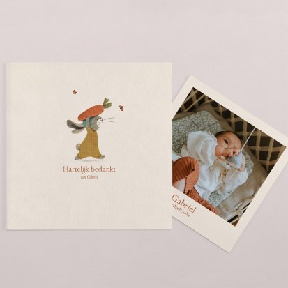 Bedank je dierbaren voor alle knuffels, kusjes en cadeautjes die je kleine uk heeft mogen ontvangen tijdens de babyborrel of kraamvisite.