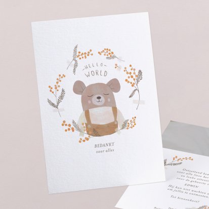 Bedank je dierbaren voor alle knuffels, kusjes en cadeautjes die je kleine uk heeft mogen ontvangen tijdens de babyborrel of kraamvisite.