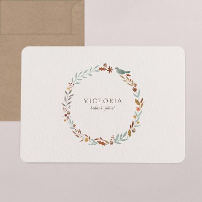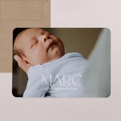 Bedank je dierbaren voor alle knuffels, kusjes en cadeautjes die je kleine uk heeft mogen ontvangen tijdens de babyborrel of kraamvisite.