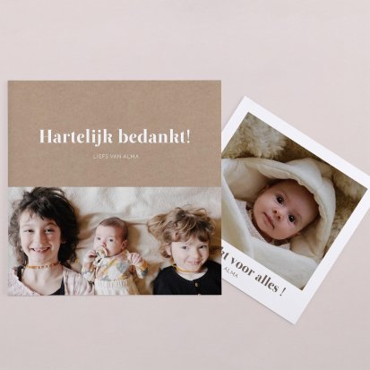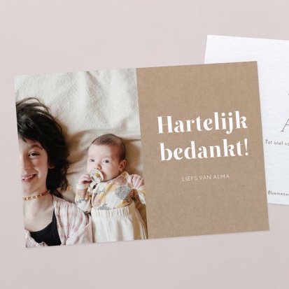Bedank je dierbaren voor alle knuffels, kusjes en cadeautjes die je kleine uk heeft mogen ontvangen tijdens de babyborrel of kraamvisite.