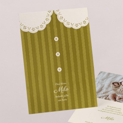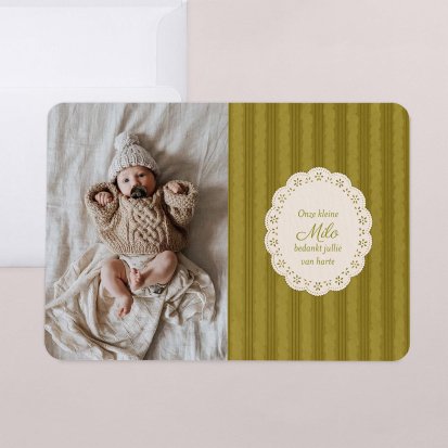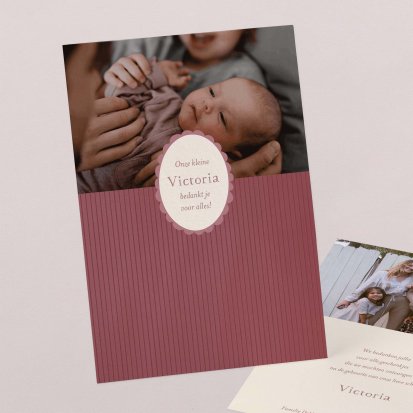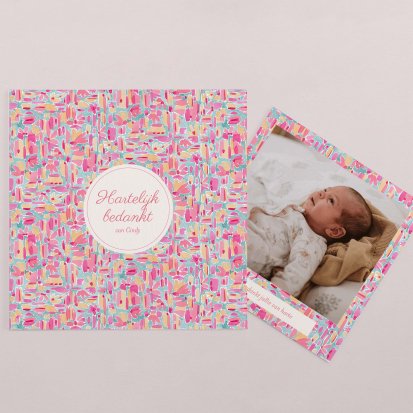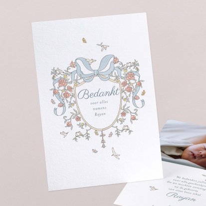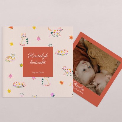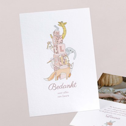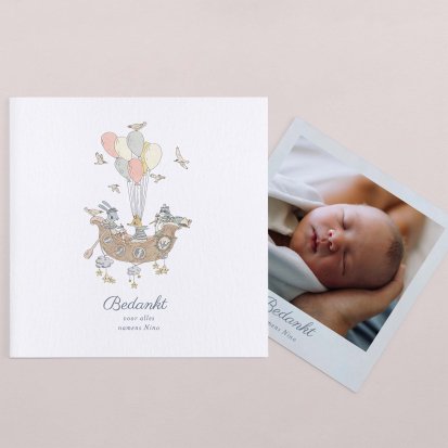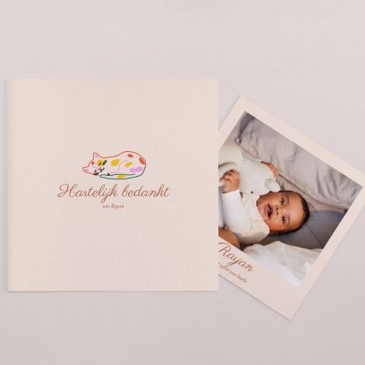 Bedank je dierbaren voor alle knuffels, kusjes en cadeautjes die je kleine uk heeft mogen ontvangen tijdens de babyborrel of kraamvisite.