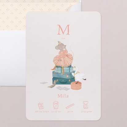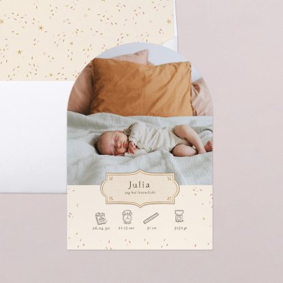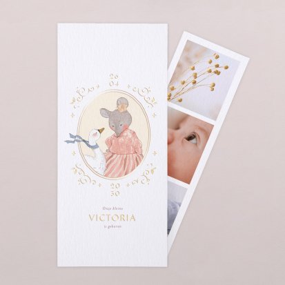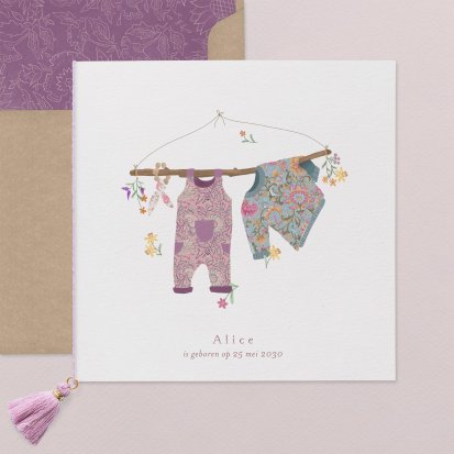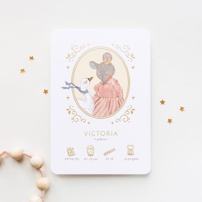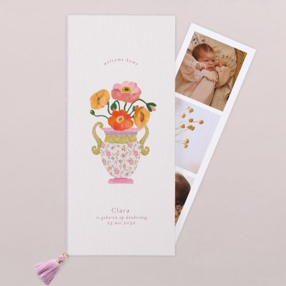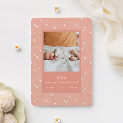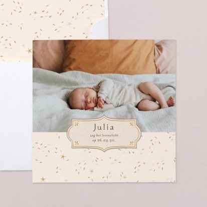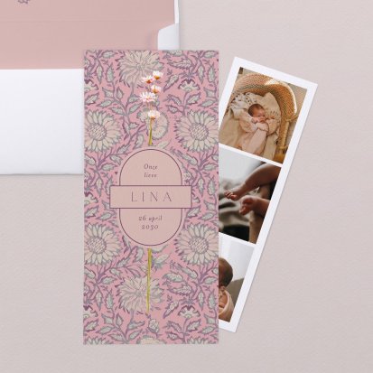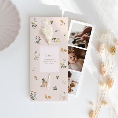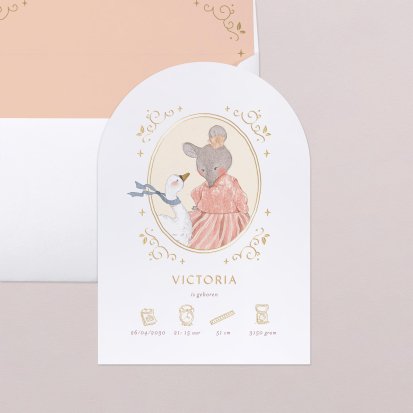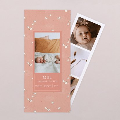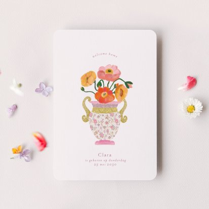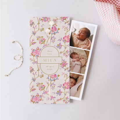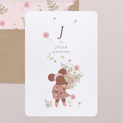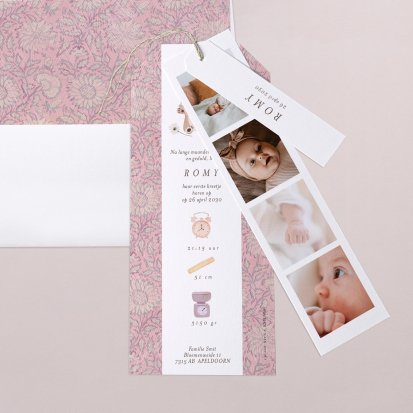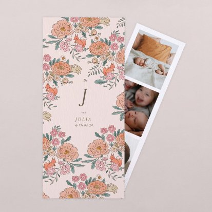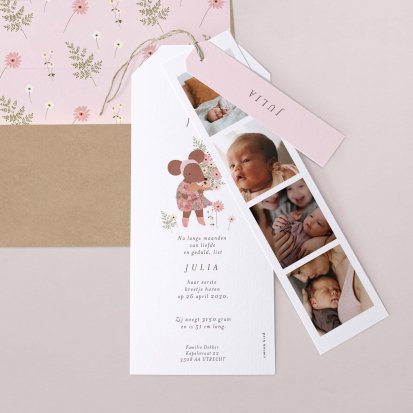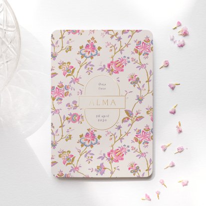 Kondig jij de geboorte van je kleine meid het liefst aan met een vrolijk roze kaartje, of juist een klassiek kaartje, of toch door middel van een romantisch geboortekaartje met een botanische krans of knuffeldieren op de voorkant? Vanaf sommige kaartjes straalt een prachtige foto van je baby de ontvanger tegemoet, terwijl weer anderen kaarten aan de binnenkant voorzien zijn van alle informatie over je baby en één of meerdere leuke foto's. Wat jouw stijl ook is, je vindt altijd het perfecte kaartje waarmee je jouw kleine meid voorstelt aan de wereld.