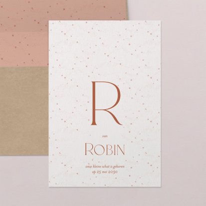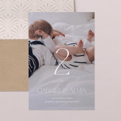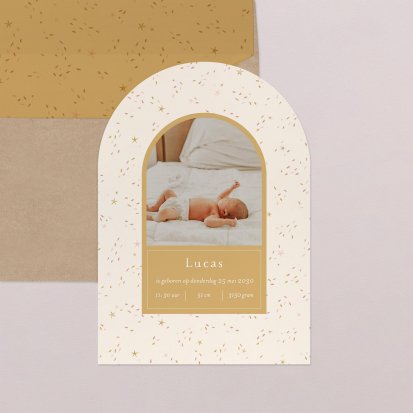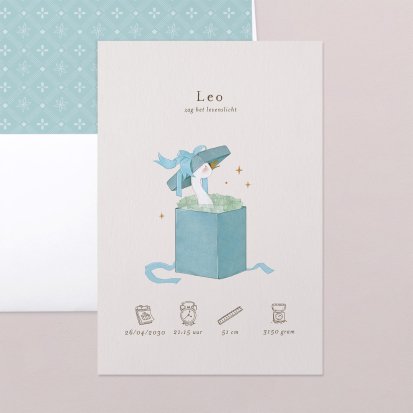 Van een minimalistisch geboortekaartje tot een geboortekaartje met een stoere opdruk, het behoort allemaal tot de mogelijkheden wanneer je een geboortekaartje voor jongens ontwerpt bij Cotton Bird. Voorzie je geboortekaartje van je favoriete foto van je kleine uk of ga voor een ontwerp met goudfoliedruk voor een extra luxe uitstraling. Er zijn zowel enkele geboortekaarten als dubbele geboortekaarten. Met een foto inlegger geef je jouw kaartje net wat extra's en kan iedereen gelijk kennismaken met je knappe zoon. De aparte inlegger kan je leuk ophangen of neerzetten. Jij kiest voor je lievelingskleur, bijvoorbeeld blauwtinten, een geboortekaartje met aardse tinten of een kaartje gedrukt op authentiek kraftpapier. Doordat er zoveel mogelijkheden zijn, ontwerp jij een kaartje dat perfect past bij jouw smaak en persoonlijkheid.