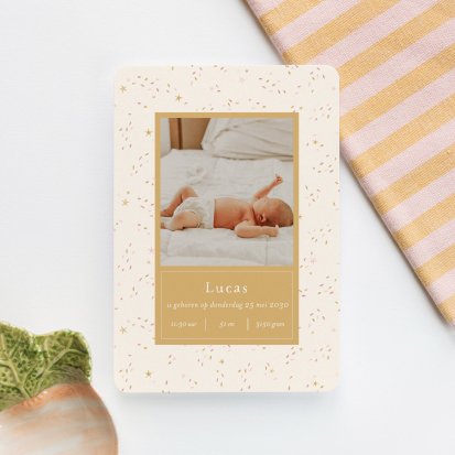 Met een zelfontworpen geboortekaartje kondig je de komst van je kleintje aan op een manier die bij jou past. Onze designers hebben de mooiste geboortekaartjes voor je ontworpen die je zelf aanpast met een eigen foto, persoonlijke tekst en natuurlijk de naam en geboortedatum van je zoon of dochter. Bij Cotton Bird drukken we het geboortekaartje op hoogwaardig papier, met een prachtige afwerking, zodat je een waar kunstwerk in handen houdt. Dit schitterende kaartje verstuur je naar je vrienden en familie, maar je zou ook zelf één of meerdere exemplaren bij je kunnen houden, want je zult nog regelmatig terugblikken op dit bijzondere moment. Bekijk het ruime assortiment en ga direct aan de slag met het ontwerpen van jouw geboortekaartje.