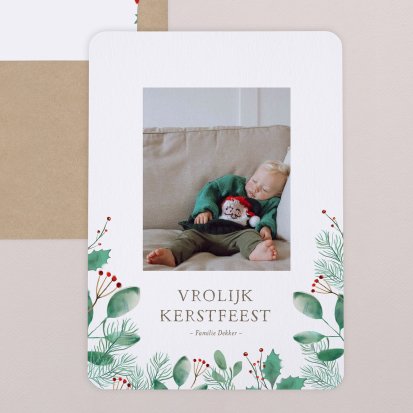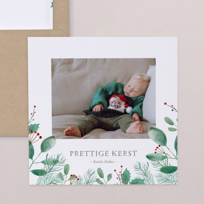 Nederlanders sturen elkaar graag kerstkaarten met de feestdagen om de ander te laten weten dat er aan ze gedacht wordt. Het is een ware traditie geworden. Het versturen van een mooie kerstkaart waar je aandacht aan besteedt hebt, is een uitstekende manier om je familie en vrienden fijne feestdagen en een gelukkig nieuwjaar te wensen. Niets is zo persoonlijk als een kerstkaart met foto. Je kunt je creativiteit de vrije loop laten bij het ontwerpen van je eigen kerstkaart met foto. Kies bijvoorbeeld voor foto's met daarop je favoriete momenten van afgelopen jaar, of maak speciaal een leuke foto voor op de kerstkaart. Verras vandaag nog je familie en vrienden met een leuke kerstkaart.