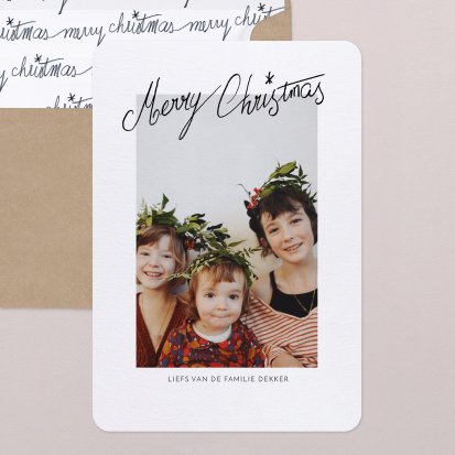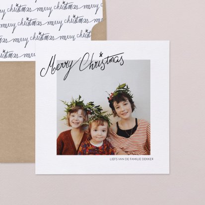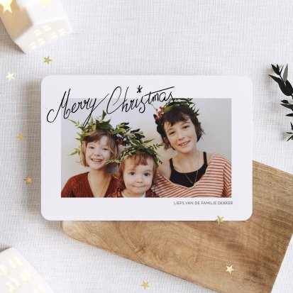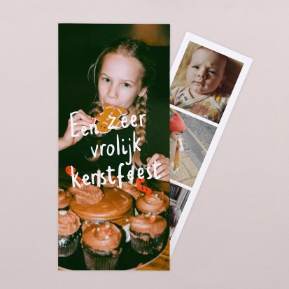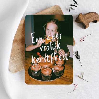 Met je eigen foto geef je iedere wenskaart een persoonlijke en warme uitstraling. Kies één van je favoriete foto's van het afgelopen jaar uit of maak speciaal voor de kaart een foto met het hele gezin in jullie foute kersttrui. Je uploadt de foto via de editor eenvoudig in jouw favoriete ontwerp. Ben jij op zoek naar een kerstkaart met een grote foto op de voorkant met daarover in goudfolie je kerstwens, of wil je juist een kaartje met meerdere foto's aan de binnenkant? Het behoort allemaal tot de mogelijkheden. Als je het moeilijk vindt om maar één foto uit te zoeken, kan je er ook voor kiezen om meerdere foto's op een fotostrip te drukken. Deze strip komt in de kaart te zitten en kan je ook leuk ophangen.
