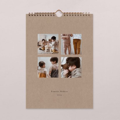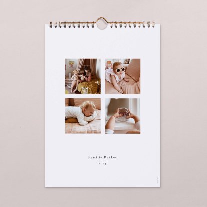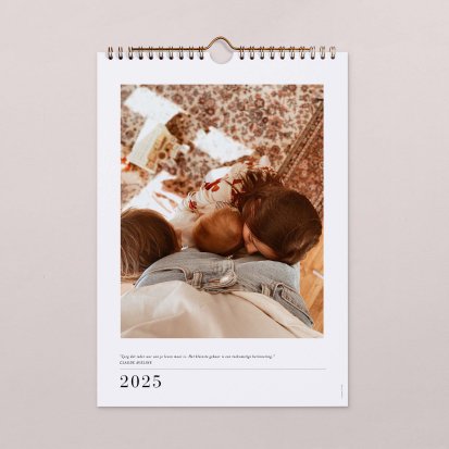 Het is hartstikke handig om een kalender in huis te hebben. Door een kalender goed in het zicht te hangen kun je jouw tijd veel beter plannen en heeft iedereen in jouw huishouden inzicht in de afspraken en to-do's van deze maand. Maak een gepersonaliseerde fotokalender bij Cotton Bird zodat je helemaal vrolijk wordt van de kalender. Met jouw favoriete foto's op iedere pagina word je dagelijks herinnerd aan je mooiste momenten, terwijl jij plannen maakt voor nieuwe bijzondere en gedenkwaardige momenten. Ook is de fotokalender heel leuk om cadeau te doen. Je hebt de keuze uit diverse designs en formaten, waardoor er altijd een prachtige kalender bij zit die past in jouw interieur.
