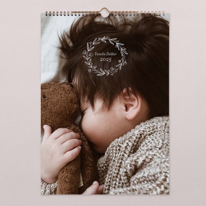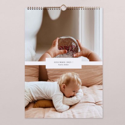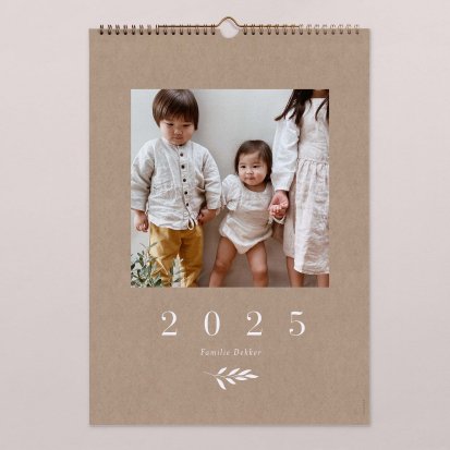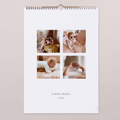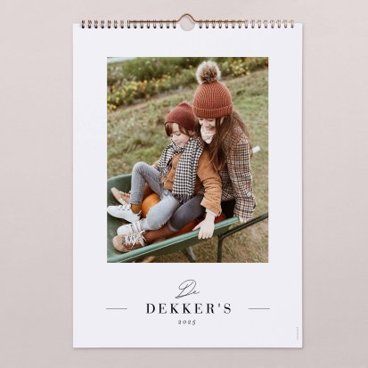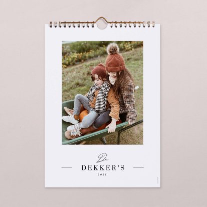 De bronzen binder clip maakt het zeer eenvoudig om de kalender op te hangen. Je hoeft alleen maar een spijker in de muur te slaan om de kalender aan te bevestigen. Hierdoor is het ook zeer eenvoudig om de pagina's om te slaan wanneer er een nieuwe maand is aangebroken. Jij kiest zelf het gewenste formaat: een A3 kalender of een grotere kalender in A4 formaat waar je nog meer informatie op kwijt kunt. De kalender wordt gedrukt op hoogwaardig papier zodat deze ook bij veelvuldig gebruik mooi blijft. Neem een kijkje bij alle fotokalenders om jouw favoriete ontwerp te kiezen en ga direct aan de slag met het personaliseren van jouw eigen kalender.