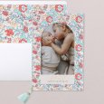 Bij het openvouwen van deze vierkante dubbele geboortekaart, ontdekken familie en vrienden een mooie foto van jullie kindje, samen met een persoonlijk berichtje.