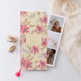 De Lelie bloem staat symbolisch bekend voor LIEFDE, vruchtbaarheid en vrouwelijkheid... ideaal voor het aankondigen van de komst van je ooh zo geliefd klein meisje. Deze geboortekaart steelt meteen alle aandacht door zijn contrasterende speling van zacht geel, patchwork van roze bloemen en een vleugje blauw. Met de naam in goudfolie straalt deze aankondiging van geluk...met een gouden randje.