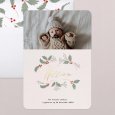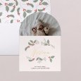 Met gouden accenten, illustraties van hulsttakken en een portretfoto van je baby, vertelt het geboortekaartje "Welkom home" met elegantie en moderniteit over de komst van je kind tijdens de meest feestelijke tijd van het jaar.