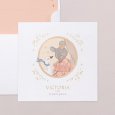 De geboorteaankondiging Lief duet illustreert op poëtische wijze de delicate samenspraak tussen een schattige muis en een gans. Deze uitnodigingskaart, gemaakt in samenwerking met Moulin Roty en voorzien van gouden details, zal het bericht van de komst van jullie pasgeborene op een zachte manier overbrengen.