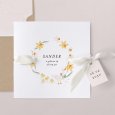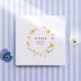 Een krans van narcissen, een schattige bij, een gans en kuikens sieren het geboortekaartje Yellow spring. Een prachtig tafereel in zonnige geeltinten, ideaal om de geboorte van je baby in de lente of zomer aan te kondigen.