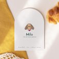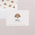 Op het Match & Patch I geboortekaartje voegt een geborduurde puppy in hazelnootkleur een extra vleugje charme toe aan jullie blije nieuws. Dit eenvoudige ontwerp combineert delicatesse en originaliteit en is ideaal om de komst van jullie lieve baby te vieren.