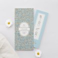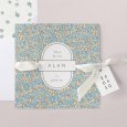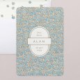 De naam van je kindje staat centraal in een verfijnd bloemmotief in blauwe tinten op het geboortekaartje Georgia blue. Een bohemien en poëtisch ontwerp, ideaal om de geboorte in de lente of zomer aan te kondigen.