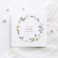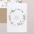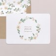 Eenvoud straalt met deze witte bloemenkrans op witte achtergrond. De geboortekaart Rosa blanca kondigt met een zacht briesje de komst van je dochter aan waarvan de geboorte in de lente of zomer verwacht wordt. Welkom meisje!