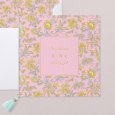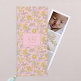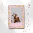 Deze geboortekaart Cashmere kondigt heel feestelijk en enthousiast de komst van een meisje aan! Een zacht gele bloemenprint geïnspireerd door de orientaalse paisley-designs staat mooi in contrast met de roze achtergrond. Een gouden randje en de naam in goudfolie geeft de aankondinging een extra elegante, waardevolle en unieke uitstraling.