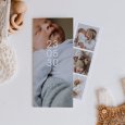 Bij het openvouwen van deze originele dubbele geboortekaart, ontdekt iedereen baby's eerste foto's op een aparte fotostrip, samengaand met de geboortegegevens en een persoonlijk berichtje.