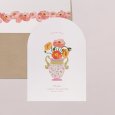 Het Aria geboortekaartje heeft een elegante vaas met boho-motieven. Met zijn aquarelbloemen zal dit elegante model de geboorte van jullie kindje op een mooie manier aankondigen.