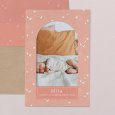 De geboorteaankondiging In de Wolken toont een groep kleine vogels tegen een hemel in zachte perzikroze tinten. Een zacht en vredig ontwerp dat perfect is om jullie geluk op een rustige manier aan te kondigen.