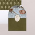 Bij het openvouwen van deze originele dubbele geboortekaart, ontdekt iedereen baby's eerste foto's op een aparte fotostrip, samengaand met de geboortegegevens en een persoonlijk berichtje.