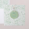 Het geboortekaartje Amanda toont een zacht lentetafereel in frisse groentinten. Verrijkt met gouden accenten, is dit poëtische ontwerp perfect om de geboorte van een jongen of meisje in de lente of zomer aan te kondigen.