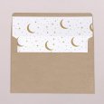 In het midden van de nacht, heldere sterrenhemel en nieuwe maan, kreeg jouw meisje of jongen met veel liefde zijn of haar naam. Deze originele geboortekaart Selenia met prachtige goudfolie kondigt met veel poëzie de geboorte van je dochter of zoon aan.