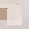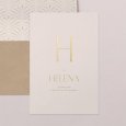 Eenvoud straalt bij de geboortekaart Apollina II. De eerste letter van een meisjes- of jongensnaam in elegante goudfolie steelt alle aandacht. Het lettertype met een vleugje Art Deco in een verdere moderne opzet, geeft deze aankondiging een minimalistische uitstraling die meteen naar de essentie van de zaak gaat: de prachtige geboorte van je dochter of zoon.