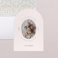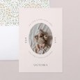 Met een moderne speling tussen het kaartformaat en de ovale fotokader trekt de geboortekaart Ovaal alle aandacht naar de eerste fotografie van je baby. Met een trendy lettertype, pastelkleur en originele tekst, verwelkomt dit minimalistisch geboortekaartje zowel een jongen als een meisje. br>