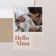 Yes baby! Op het unieke geboortekaartje Colorama - terracotta? trekt een speelse blauwe typographie alle aandacht naar de naam van je kleine jongen of meisje. Samen met een foto en moderne opmaak van de geboortedatum is deze originele geboortekaart ideaal voor het aankondigen van de geboorte van je zoon of dochter. Dit gepersonaliseerde geboortekaartje kan je zelf online ontwerpen en bestellen met behulp van de editor.