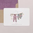 Het Asya geboortekaartje viert de komst van jullie kleine schat met poëzie. Betoverende illustraties van bloemenkleding geïnspireerd op de iconische motieven van Louise Misha staan op deze creatie en kondigen zachtjes de geboorte van jullie kleine meid of jongen aan.
