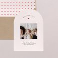 Dit geboortekaartje wordt gekenmerkt door zijn afgeronde bovenranden in de vorm van een boog en kan aan de voor- en achterkant worden gepersonaliseerd met de details van de geboorte van jullie baby.