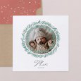 Op het geboortekaartje "Holy crown" siert een winterse plantaardige krans de mooiste foto van je kind. Modern en elegant deelt dit model je mooiste verrassing van het jaar.
