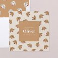 Dit geboortekaartje wordt gekenmerkt door zijn afgeronde bovenranden in de vorm van een boog en kan aan de voor- en achterkant worden gepersonaliseerd met de details van de geboorte van jullie baby.