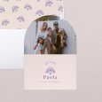 Dit geboortekaartje wordt gekenmerkt door zijn afgeronde bovenranden in de vorm van een boog en kan aan de voor- en achterkant worden gepersonaliseerd met de details van de geboorte van jullie baby.