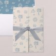 Het geboortekaartje is een staande kaart met een centraal paneel en twee zijpanelen die openvouwen om de belangrijkste details van jullie speciale dag te onthullen. De zijpanelen kunnen gesloten blijven met een mooi lint (optioneel).