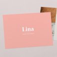 Dit kleine kaartje is als uitnodiging of bedankkaartje te verzenden. Dubbelzijdig en staand formaat met aan een kant je foto en aan de andere kant je tekst.