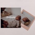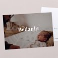 Dit kleine kaartje is als uitnodiging of bedankkaartje te verzenden. Dubbelzijdig en staand formaat met aan een kant je foto en aan de andere kant je tekst.