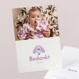 Dit kleine kaartje is als uitnodiging of bedankkaartje te verzenden. Dubbelzijdig en staand formaat met aan een kant je foto en aan de andere kant je tekst.