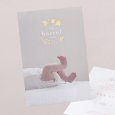 Dit kleine kaartje is als uitnodiging of bedankkaartje te verzenden. Dubbelzijdig en staand formaat met aan een kant je foto en aan de andere kant je tekst.