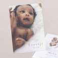 Dit kleine kaartje is als uitnodiging of bedankkaartje te verzenden. Dubbelzijdig en staand formaat met aan een kant je foto en aan de andere kant je tekst.