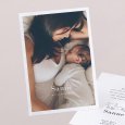 Dit kleine kaartje is als uitnodiging of bedankkaartje te verzenden. Dubbelzijdig en staand formaat met aan een kant je foto en aan de andere kant je tekst.