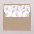 Een meisje in communiejurk met een boeket tarweoren: konding de communie of het lentefeest van je kind aan met de Harvest uitnodiging en zijn hartverwarmende illustratie. Een delicaat en sober ontwerp dat de schoonheid van het communiefeest weerspiegelt.