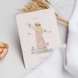 Een simpel en trendy uitnodiging voor een communie of lentefeest met afgeronde hoeken, dubbelzijdig en staand formaat.