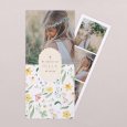 Bij het openvouwen van deze originele dubbele communiekaart, ontdekt iedereen de prachtige communiefoto’s op een aparte fotostrip, samengaand met de datum en een persoonlijk berichtje ter herinnering van dit plechtig moment van een lentefeest, heilige of plechtige communie.