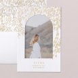 Unieke dubbele communiekaart met een vensterraam. Ontdek bij het openvouwen een loszittend kaartje met de communiefoto en een persoonlijk berichtje.