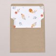 Word verliefd op de Oranje Bloesem huwelijksuitnodiging met zijn subtiel geïllustreerde bladeren en bloemen. De kaart kondigt een elegant frisse trouwthema aan.