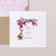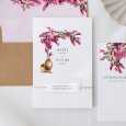 Op de trouwkaart Bougainvillée prijkt de prachtige mediterrane struik die deze naam draagt boven de voornamen van het bruidspaar: een subtiele verwijzing naar een zomerse bruiloft aan de Middellandse Zee.